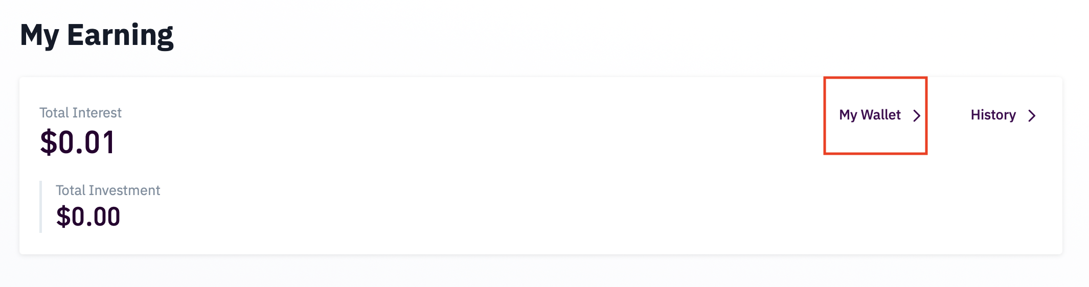 In order to manage savings on the mobile app, you can tap on My Wallet button on the Earning page.
