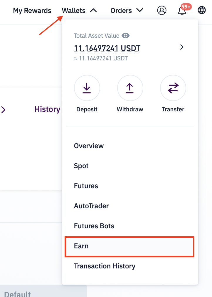 Or by navigating to Earn section in your Wallet: