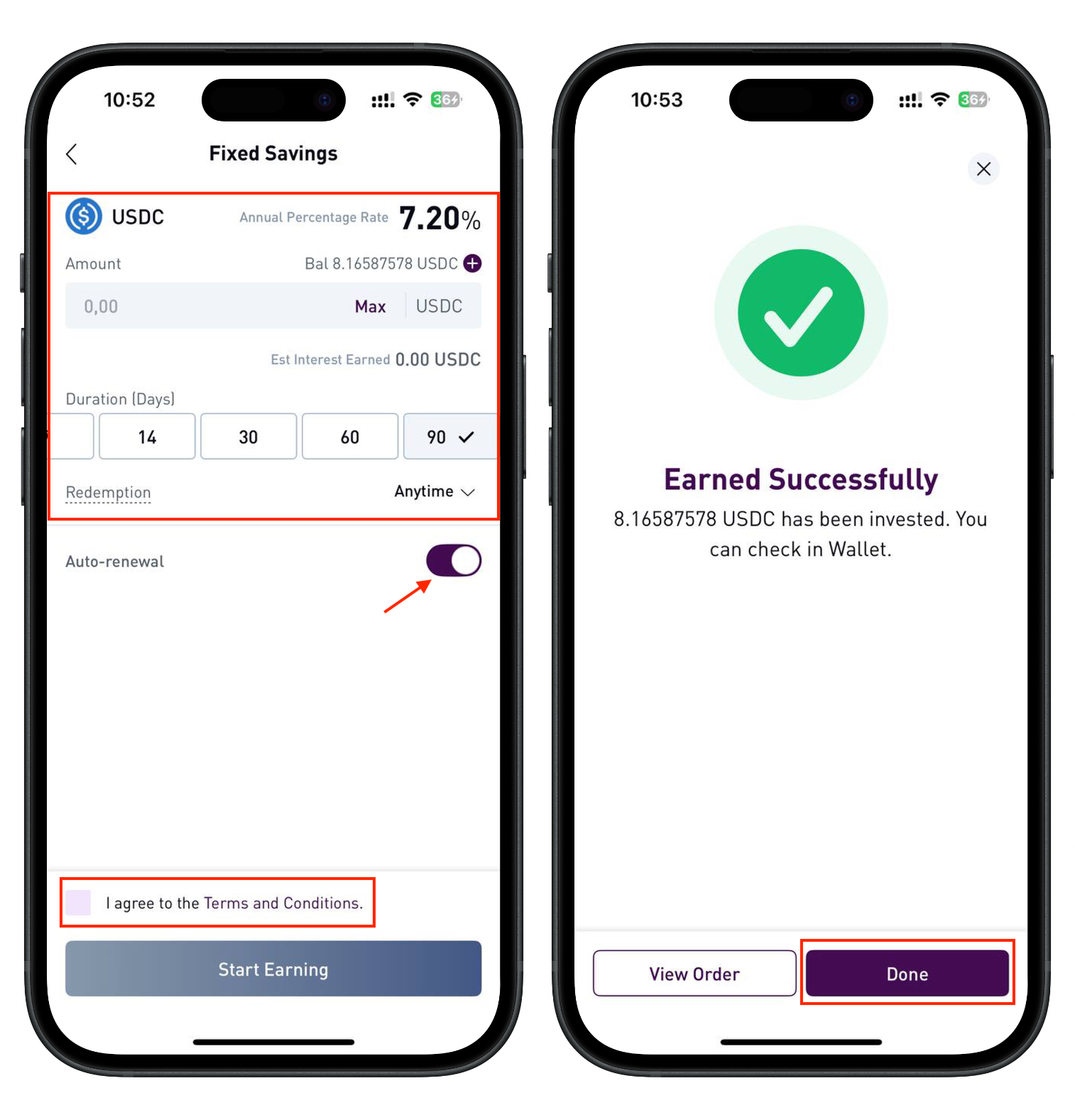 - Click Start Earning.