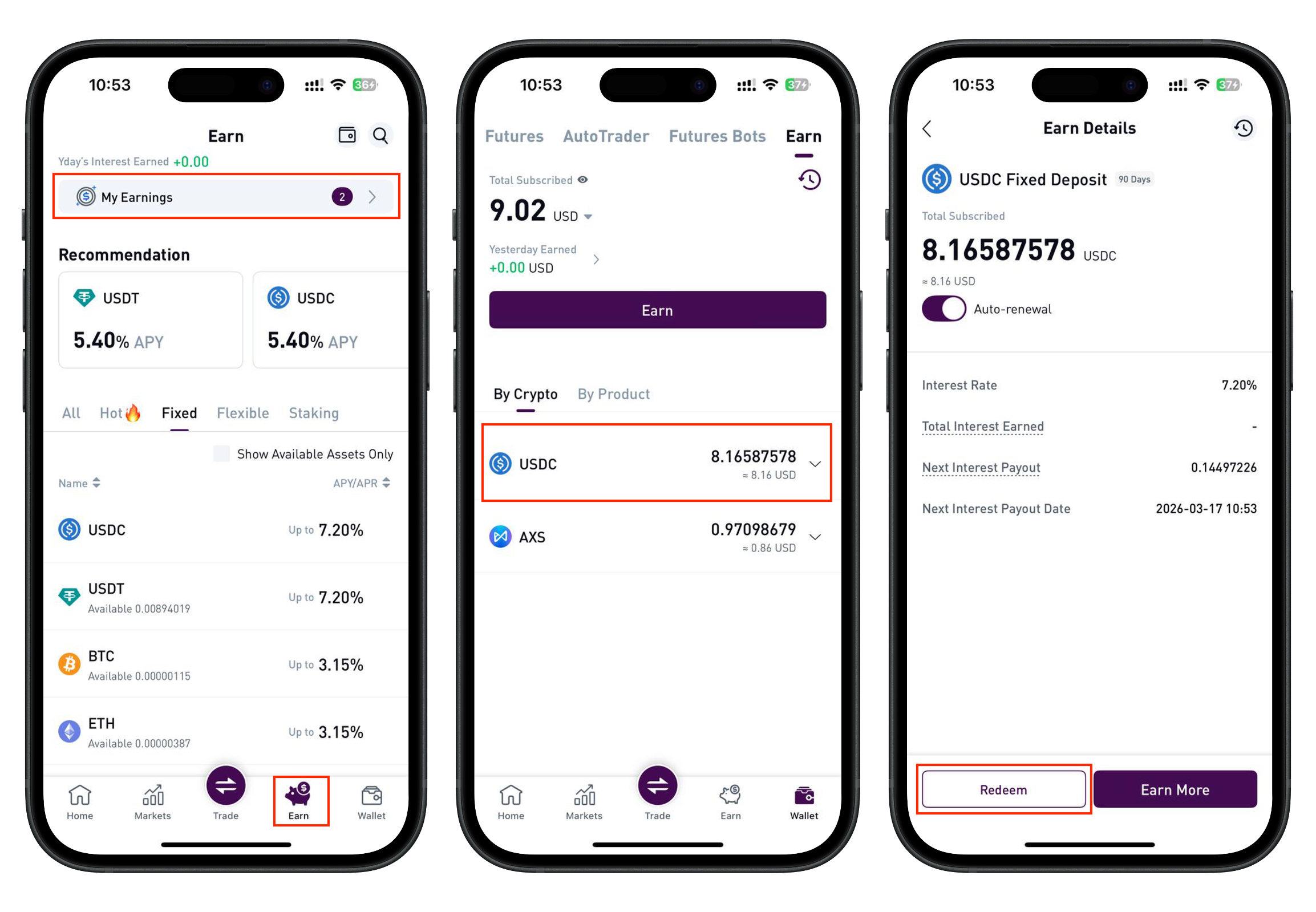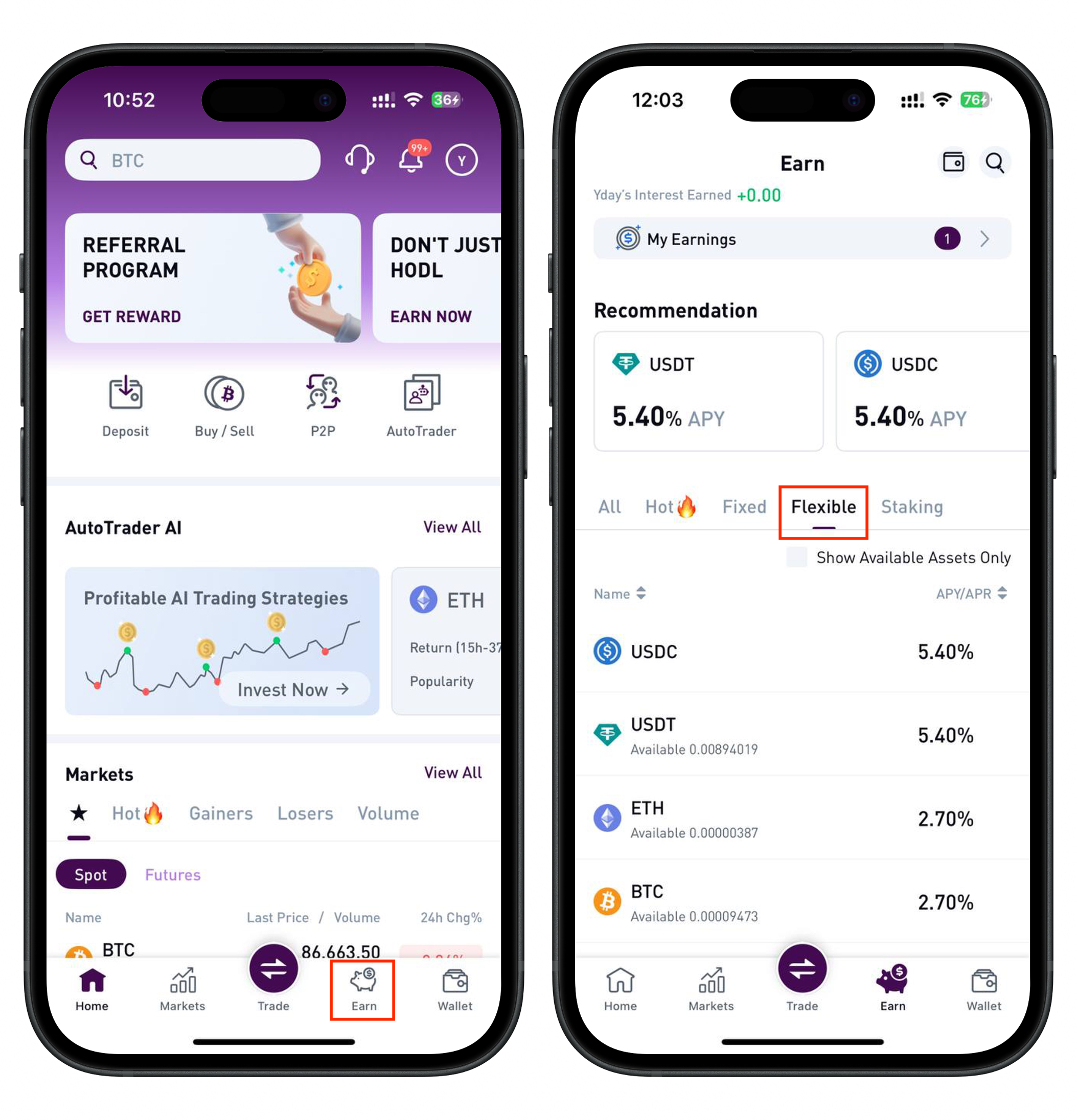 - Navigate to the Earn section.