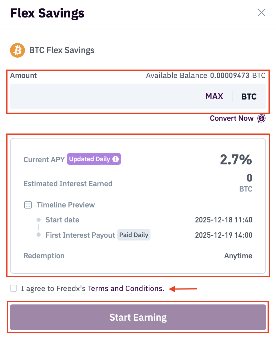Freedx Earn offers a simple way to generate interest on your assets. One of the available earning options is crypto savings. Essentially, users provide their assets to the platform and receive interest payments in return.