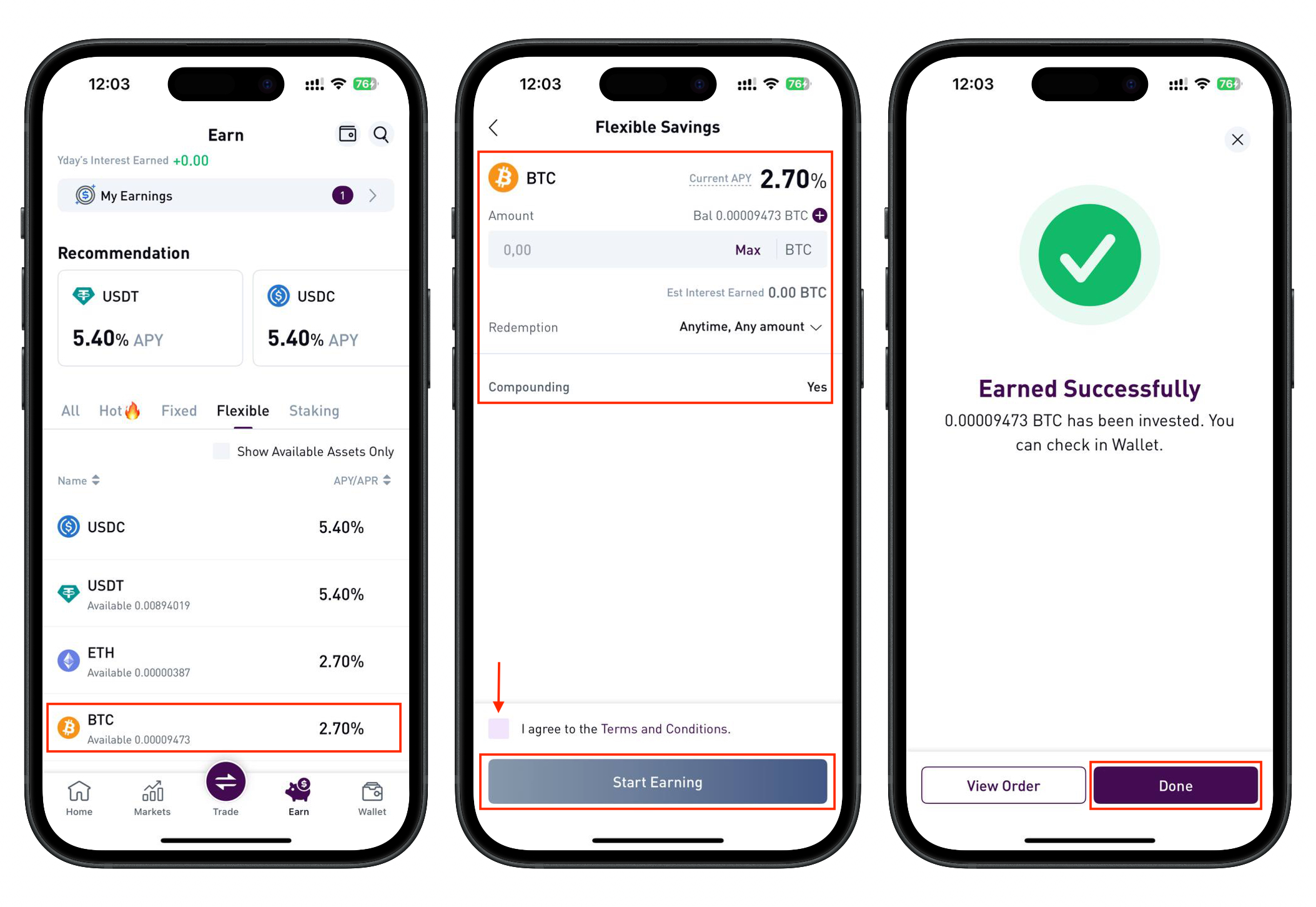 - Browse the available earning products.